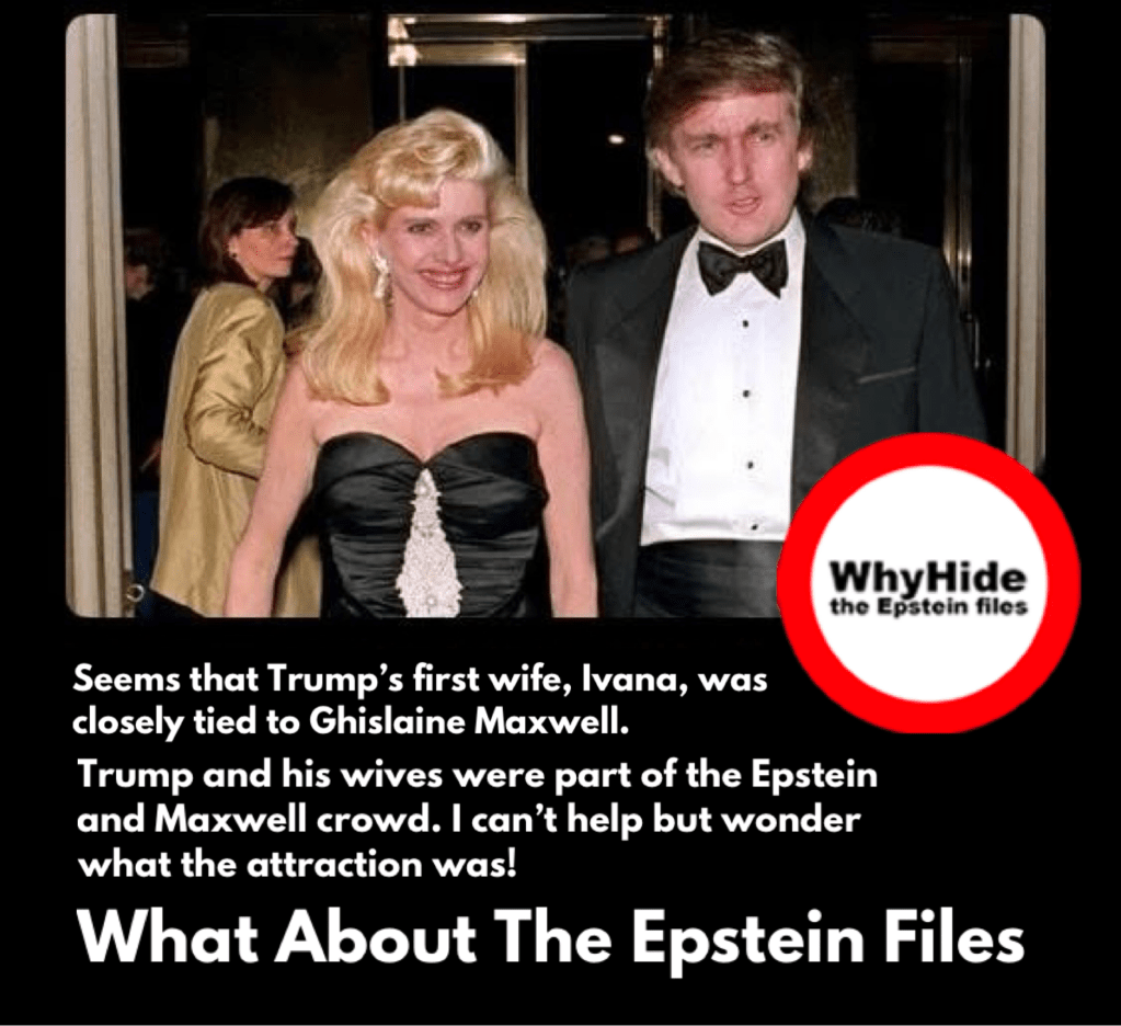 We’ve learned Ivana, Trump’s first wife, was very good friends with Ghislaine Maxwell, convicted sex trafficker of minor girls, lover and facilitator for Pervert Jeffery Epstein.