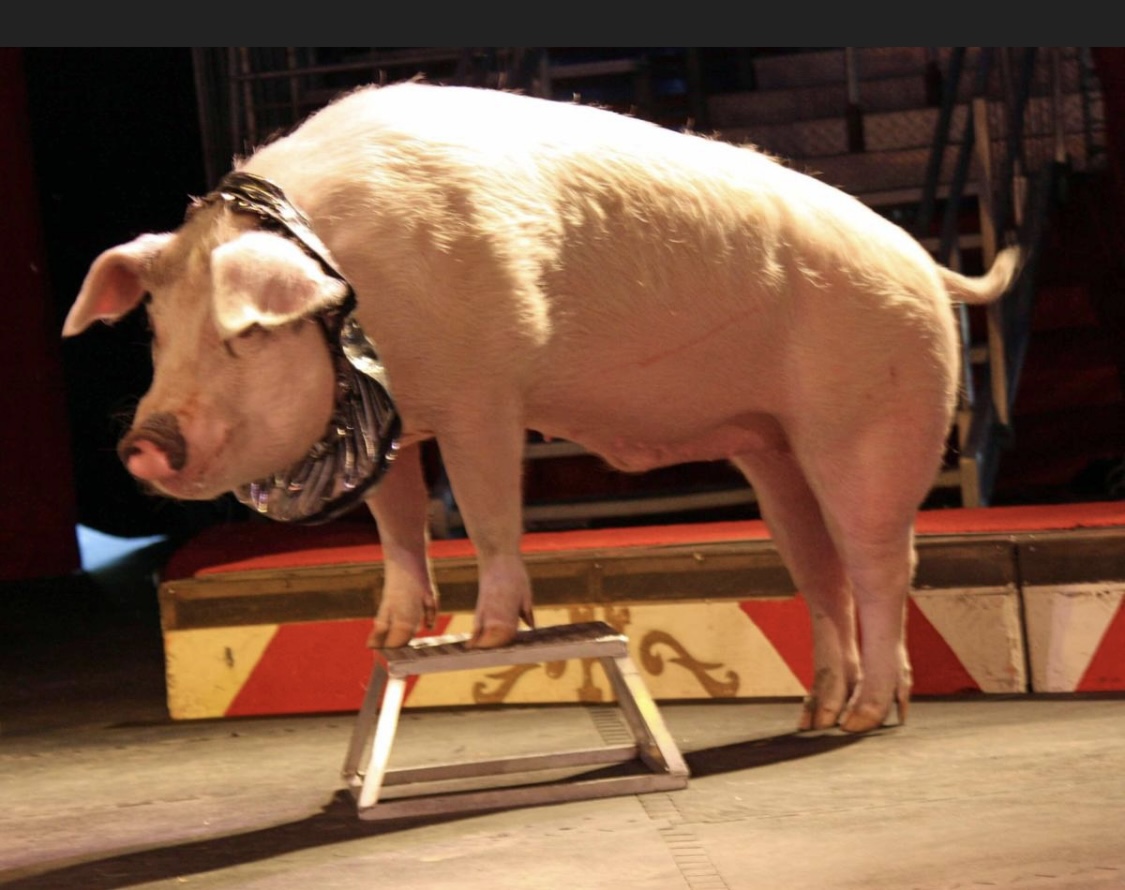 Eddie’s show started around 4:00 in the morning, but Lisa was a good sport and agreed to have a pig and a couple of goats accompany her if I would arrange for transport. No problem, I rented an extended van and arrived at the circus’s livestock tent before daybreak the next morning. Lisa had one of their animal handlers help load the livestock and with me driving we all headed up to the TV station. The clown band was coming up to the station later with my assistant.