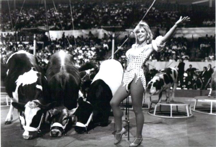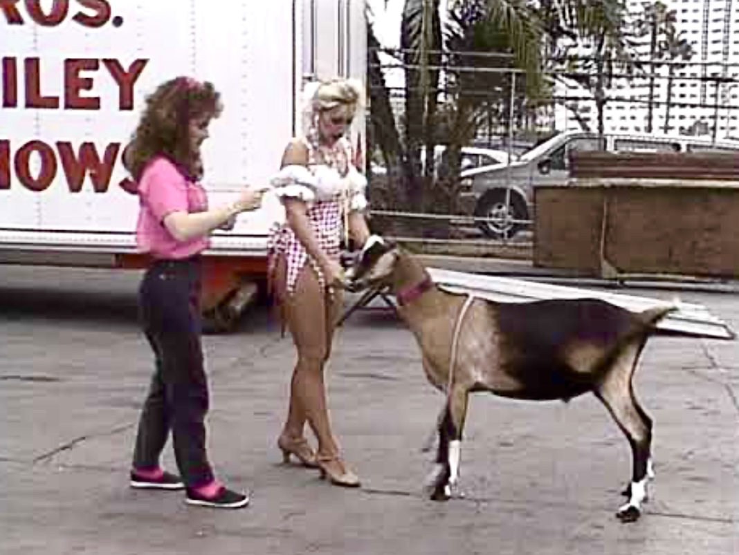 I’m pretty sure this particular guest appearance was in January of 1991, because that’s when the Gulf War broke out (more about that later) and the Circus also had a particular act that Eddie was interested in featuring, Lisa Dufresne’s Barnyard Animal Act. Her act included a group of trained cows, pigs and goats and one of the goats was particularly good at dancing to fiddle music (Eddie was a great fiddler).