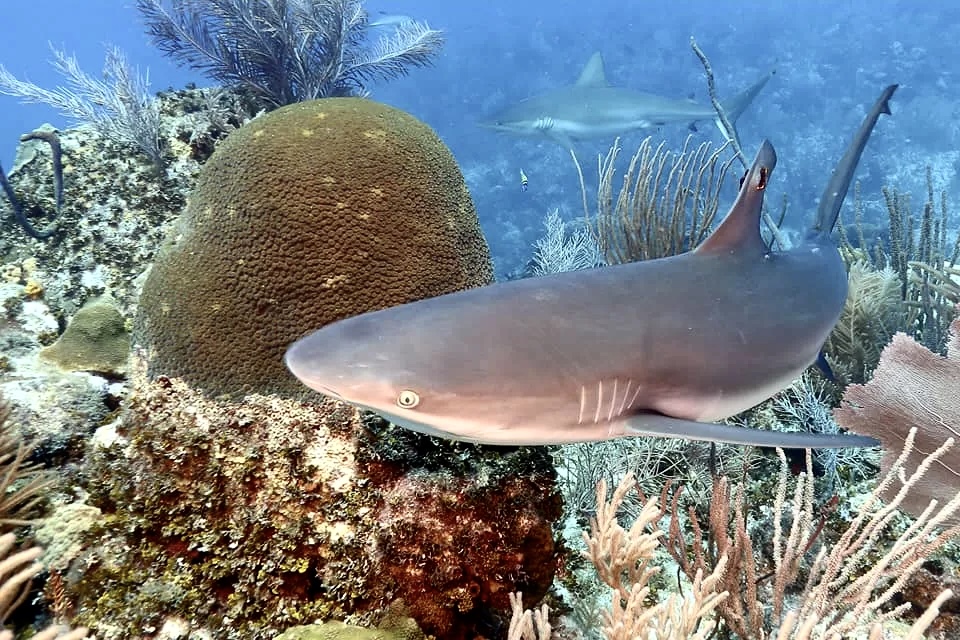 Once on the surface, I told her about the sharks (more than one had appeared) and we descended to the ocean floor and headed up the coral channels. Once we made the shoreline safely, we hurried to the dive center to warn others of the danger.